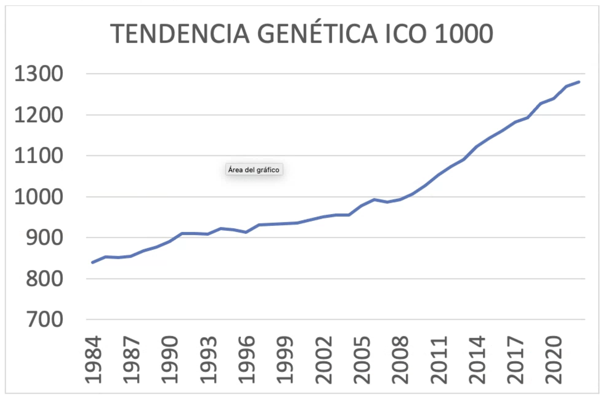 A partir de la evaluación de junio de 2023, el índice compuesto ICO tendrá una nueva escala cuya media es igual a 1000, que corresponde a la base genética y una Desviación Típica (DT) de 100.