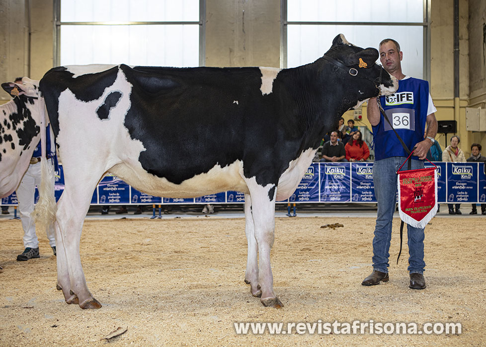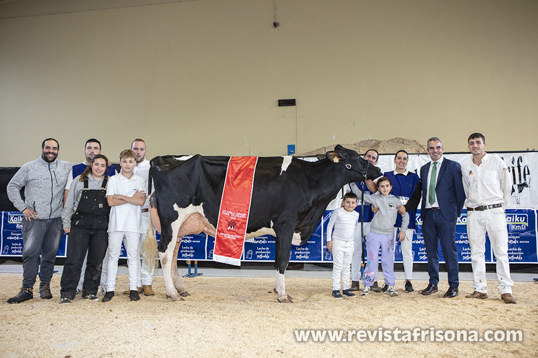 “Una vaca que destaca por un gran sistema mamario, un buen equilibrio tanto en la ubre anterior como posterior, un ligamento suspensor medio bien definido con una muy buena colocación de los pezones y por su gran estructura y capacidad lechera en cuanto a su apertura de costilla y profundidad”, explicó Javier Álvarez tras su elección en la gran final.