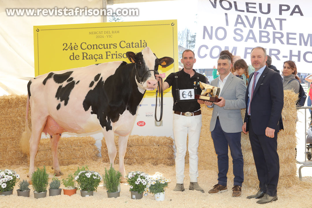 Marquet Paradis Unstopabull, de la ganadería Cal Marquet, fue proclamada como Vaca Gran Campeona de Cataluña 2024 en la 24ª edición del Concurso Catalán de Raza Frisona 2024, que se celebró los días 23 y 24 de marzo en Vic (Barcelona), en el marco del Mercat del RAM de Vic, organizado por la Federació Frisona de Catalunya (FEFRIC).