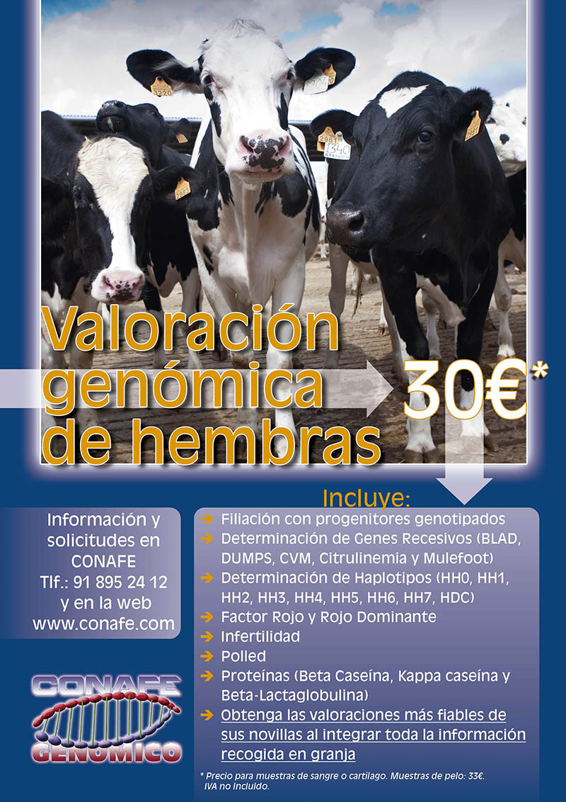 En 2012 CONAFE puso el servicio de valoración genómica de hembras a disposición de sus socios y demás personas y/o entidades interesadas. Las evaluaciones genómicas permiten seleccionar los mejores ejemplares a una edad más temprana y con mayor seguridad, ya que son más fiables que los índices de pedigrí, utilizados tradicionalmente.