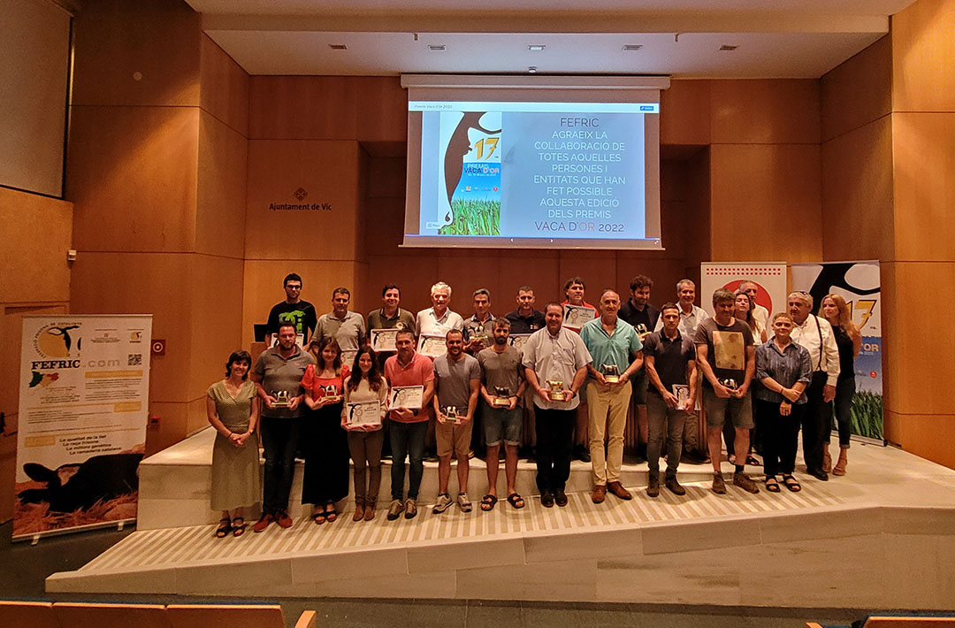 La Federación Frisona de Cataluña (FEFRIC) celebró ayer 16 de junio de 2022 su Asamblea General anual y la 17 edición de sus Premios Vaca de Oro, que distinguen a las 20 mejores explotaciones de vacuno lechero catalanas.